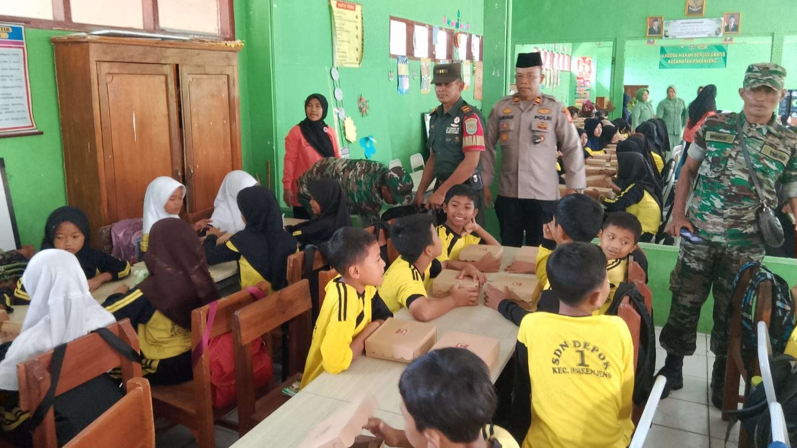A. Selamat Siang Komandan Ijin Melaporkan Pada hari Jum’at tanggal 15 November 2024 pukul 09.00 WIB sampai dengan selesai bertempat di SDN 1 Depok, Kp. Pasirwangi, Ds. Depok, Kec. Pakenjeng Kab. Garut telah dilaksanakan kegiatan Uji Coba Program Makan Bergizi Gratis dari Koramil 1122/Pakenjeng Kodim 0611/Garut yang di berikan kepada siswa – siswi SDN 1 Depok dan TK PGRI 1 Pakenjeng, bertindak selaku penanggung jawab kegiatan Kepala Sekolah SDN 1 Depok (Ibu Euis Rosmawati, S.Pd.SD) dengan peserta siswa – siswi sebanyak ± 200 Orang, (180 Siswa/wi SDN 1 Depok dan 20 siswa/wi TK PGRI 1 Pakenjeng).
